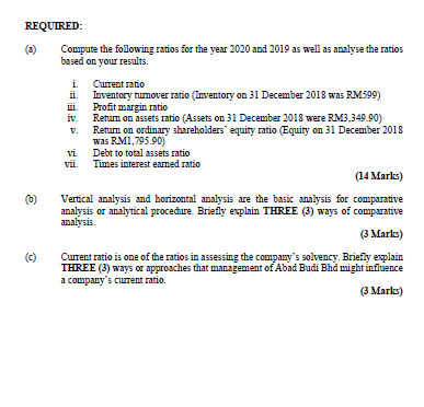 Question 3 20 Marks Abad Budi Bhd Is A Listed Chegg Com
